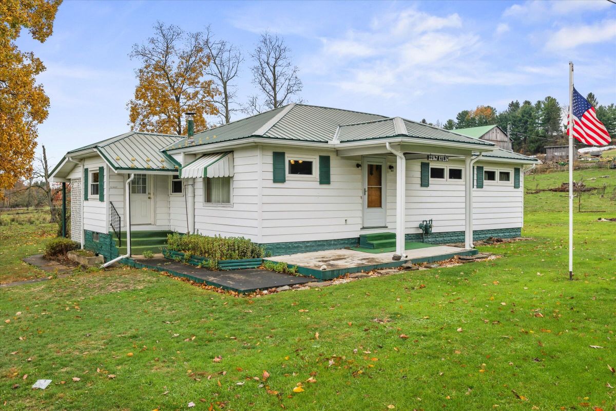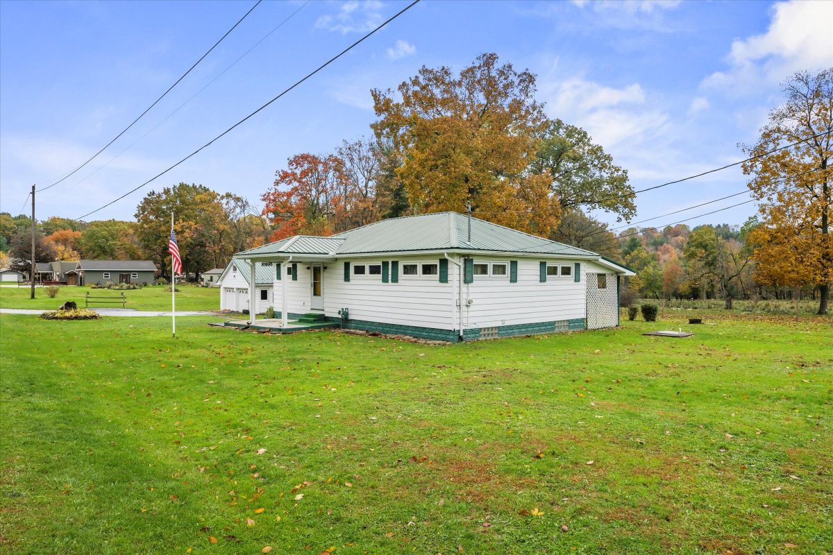 Three bedroom, one bath ranch situated on a half-acre lot. This home offers a full basement, metal roof, and covered porch to enjoy the evenings. A two-car detached garage offers extra storage options and work space. A solid home with potential for updates to make it your own. Convenient layout and plenty of outdoor space for a variety of uses.