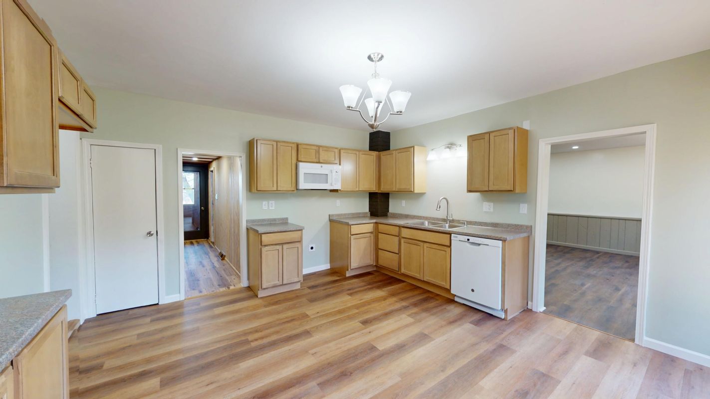 Welcome to 115 Robinson St, a freshly remodeled 3-bedroom 2 bath home situated on a double lot with a view and ample off-street parking. Inside, the kitchen offers an abundance of cabinets and counterspace. There is a bonus room off the kitchen that would make a great pantry. The living room showcases striking diagonal knotty pine wood paneling with a ceiling fan, adding a rustic charm to the home. There is a large dining room featuring recessed lighting and wainscoting with sage-green paneling. The first floor bathroom doubles as a laundry room and is distinctively finished with warm knotty pine wood paneling on both walls and ceiling, housing a pedestal sink, toilet, and washer/dryer units. Upper floor bedrooms feature light hardwood floors, soft neutral walls, and natural light from framed windows. And the city view is a bonus. Alley access to the back yard and a large parking area for 3 cars. Located convenient to downtown amenities and the hospital, this one is a real find!