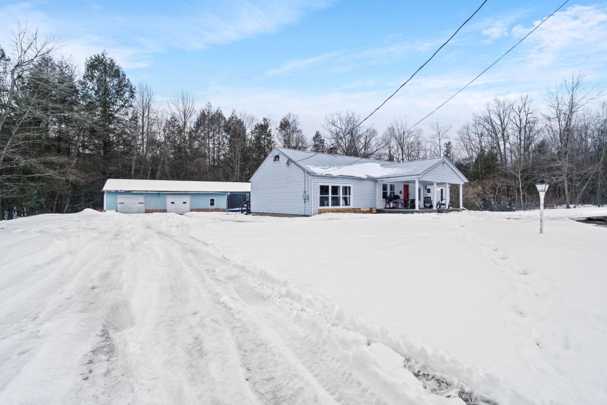 Country Living with Space to Breathe - 3.68 Acres. Escape to the peace and simplicity of country living with this charming 2+ bedroom, 1 bath home set on 3.68 beautiful acres. Warm and inviting, the home offers a comfortable layout and a kitchen that feels like the heart of the home. Perfect for everyday living and gathering. Cozy up with oil forced-air heat and the added charm of a pellet stove.