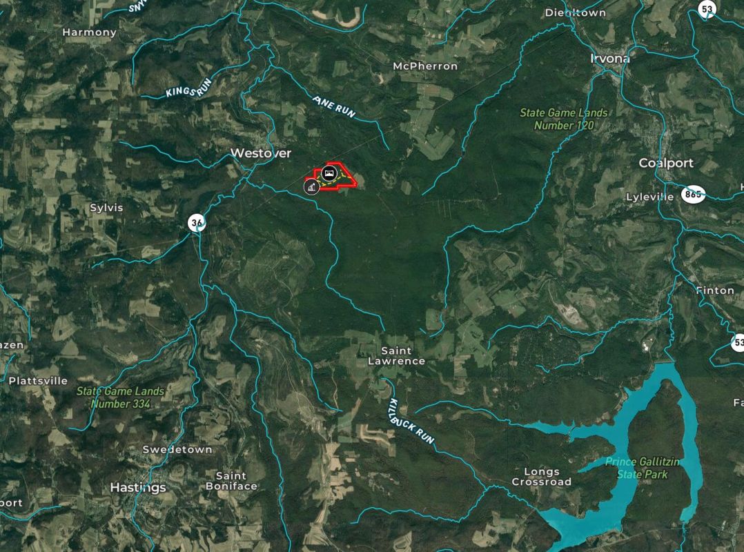 This property has very diverse topography with the high flat top knoll with views for miles in several directions as well as the stream valley with mountain water flowing through the large hardwood forest. The old homestead could be turned into a great home or camp location with great views and flat yard that would not hurt the wildlife and hunt ability. The gas and oil rights transferwith the property with one producing well on the property providing royalties to the owner. The gas well road is maintained and gives great access through the property for recreation as well as timber management projects. The property boost a good timber investment with many mature hardwoods ready to be harvested. The age structure of the forest would allow for super timber management practices for years. Wildlife is abundant on the property with many Whitetail deer, turkey, bear, and other small game. The property is a short distance from state stocked Chest Creek for great fishing and kayaking. The Rock Run Recreation area is known for its great ATV riding trails and is a short distance away. Prince Gallitzin State Park is also just a short drive away providing great boating and fishing opportunities. Call today to set up a showing on this rare listing.