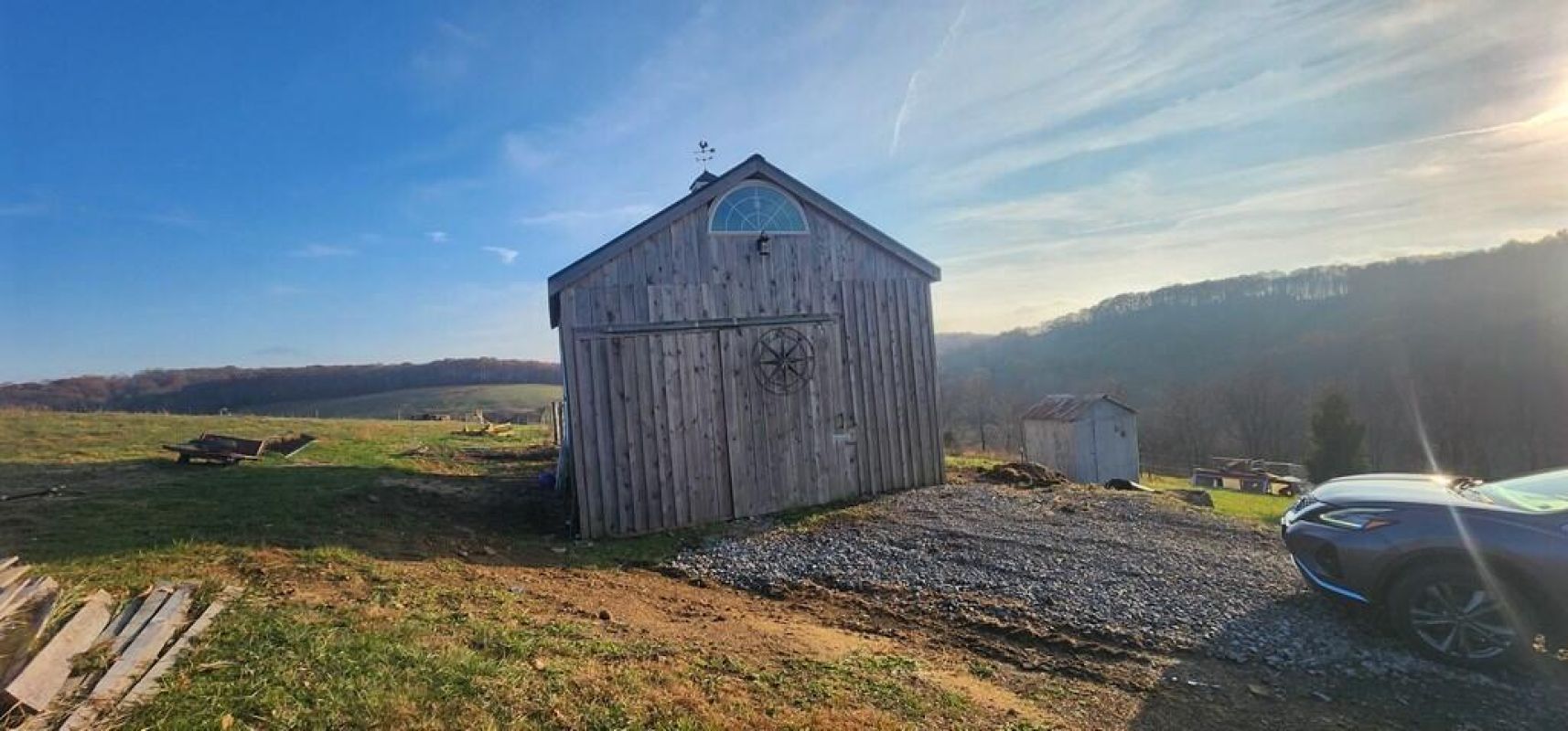Located on 20+ acres and featuring Panoramic views, this beautiful hilltop Ranch is a well maintained 3 bed, 2 bath built in 2010. FREE GAS to house and outbuildings!! Home features African Acacia and oak hardwood floors, a newly updated kitchen with Hickory cabinets, walnut butcher-block counters, and Viking range, this home offers many upgrades throughout. The full block basement provides excellent storage, while multiple outbuildingsincluding a 20×20 barn with electric and water, fenced pasture, pond, and two large garagescreate endless possibilities for hobby farming, workshops, or equipment storage. Updated mechanicals include a newer gas furnace, central A/C, and two Kohler natural-gas generators. OGM'S included. A rare property offering privacy, functionality, and exceptional land use. This property has an existing hops farm, providing hops to local breweries. There is also kennels for pet breeding and boarding.