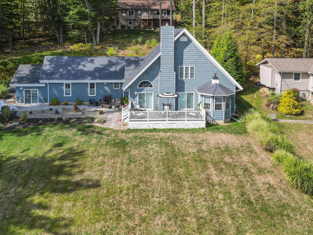 This Treasure Lake hidden gem offers stunning water views, privacy, and countless upgrades across two lots totaling three-quarters of an acre. The 4-bedroom, 3.5+ bath home features a vaulted great room with a 2-story stone fireplace, a gourmet kitchen with granite island, quartz countertops, and stainless steel appliances, plus a dining area and 3-season room all overlooking the lake.The spacious master suite includes a walk-in closet, tiled shower, jetted tub, dual vanities, and custom finishes. Additional bedrooms provide lake or courtyard views, ceiling fans, ample storage, and even an in-wall safe. The finished lower level extends the living space with a bar/kitchenette, family room or guest quarters with egress, and a full bath. Outdoor living is exceptional with a Trex deck, private courtyard with firepit, professional landscaping, and a blacktop driveway framed by retaining walls and mature pines. Extras include a 2-car garage with attic storage, an oversized toy garage/workshop with wood stove and plumbed bath, plus a modern studio/she shed with mini-split HVAC and patio access. Comfort and peace of mind come with a whole-house Generac generator, water and air filtration systems, commercial water heater (2023), 50-year roof, Leaf Filter gutter protection, hardwired security system with Ring cameras, and warranties with product brochures included. Truly move-in ready, this home blends luxury finishes, smart systems, and outdoor beauty in one of Treasure Lake's most desirable settings.
