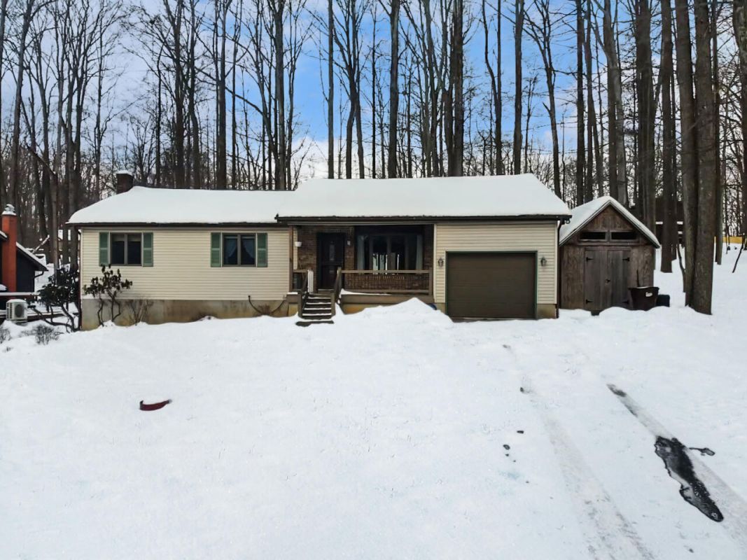 Affordable one level living. This comfortable 3-bedroom 2.5 bath ranch home has it all. The kitchen features granite counters, a center island and stainless-steel appliances and this home boasts central vac too! Enjoy morning coffee on the back deck or have outdoor fun in the fenced in back yard. ''All aboard'' for the finished lower level, complete with a fully functioning train track, you can take it or leave it, in the finished area and a wood burning stove to keep it toasty. There is also a large unfinished basement area for all your storage needs. Need more? There is a large shed equipped with electric and lighting for all your DIY projects or big boy toy storage. There is a mini split located in the living area to keep things cool or add additional heat. All this is located in a gated resort style community. Treasure Lake offers 2 pristine lakes for boating, swimming and fishing. Or set a tee time at one of the two well-manicured 18-hole golf courses. Pickle ball or Tennis, anyone? we have courts for that and sandy beaches with sand volleyball courts. Or just come to enjoy the natural surroundings and wildlife.