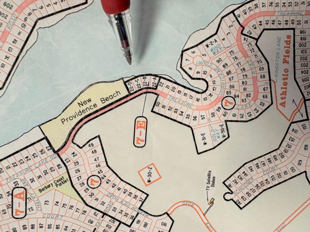 Directions: Enter Treasure lake, Go to the end of Coral Reef. Turn left onto Bay Rd. Turn right on the second Treasure Lake Road. House on the right just before Providence Beach.