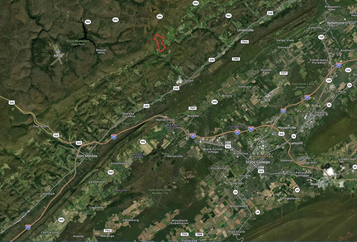 Welcome to 159+/- acres in Centre County, Pennsylvania, a rare large-acreage opportunity located within close proximity to State College -- one of Central Pennsylvania's most desirable destinations. Whether you're seeking a recreational retreat, long-term investment, or future generational property, this diverse tract offers endless potential.This expansive property features a strong mix of terrainand habitat, making it an excellent hunting and recreational property with abundant opportunities for further enhancement. The layout is ideal for developing major food plot architecture, improving access, and creating a premier hunting and outdoor retreat. The property already supports quality wildlife habitat, and with thoughtful improvements, could easily be transformed into a top-tier recreational destination. An existing old homesite provides a unique opportunity to create a breathtaking new home, cabin, or weekend getaway. Positioned in a scenic setting, the homesite offers privacy and natural beauty that is increasingly difficult to find, especially in Centre County. Adding to the property's appeal, a beautiful stream traverses the southern end of the property, flowing near the old homesite and enhancing both the recreational value and aesthetic appeal. The presence of existing timber value further strengthens the investment potential, offering both immediate and long-term opportunities. Property Highlights: 159± acres in desirable Centre County Close proximity to State College and surrounding attractions Excellent hunting and recreational opportunities Potential for major food plot development Existing old homesite with outstanding build potential Beautiful stream along the southern portion of the property Existing timber value and investment potential Diverse terrain with multiple recreational uses Ideal long-term or generational property Large tracts of land in Centre County are increasingly difficult to find, especially those offering this level of privacy, diversity, and proximity to State College. Whether you're looking to invest, hunt, build, or create a property to pass down for generations, this property offers a rare and exciting opportunity.